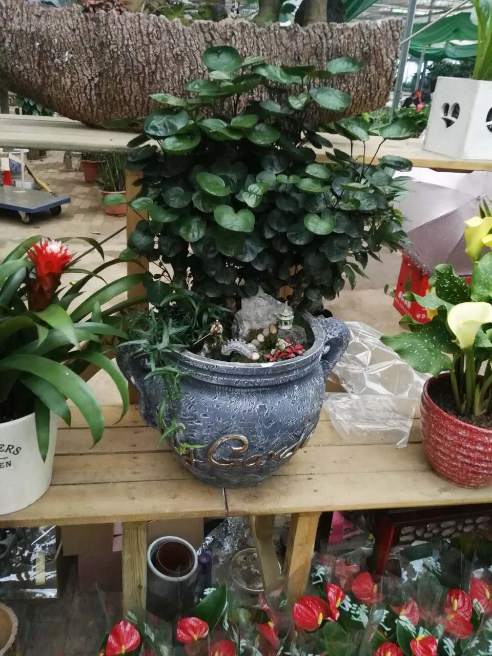 发财树、绿萝柱、盆景
